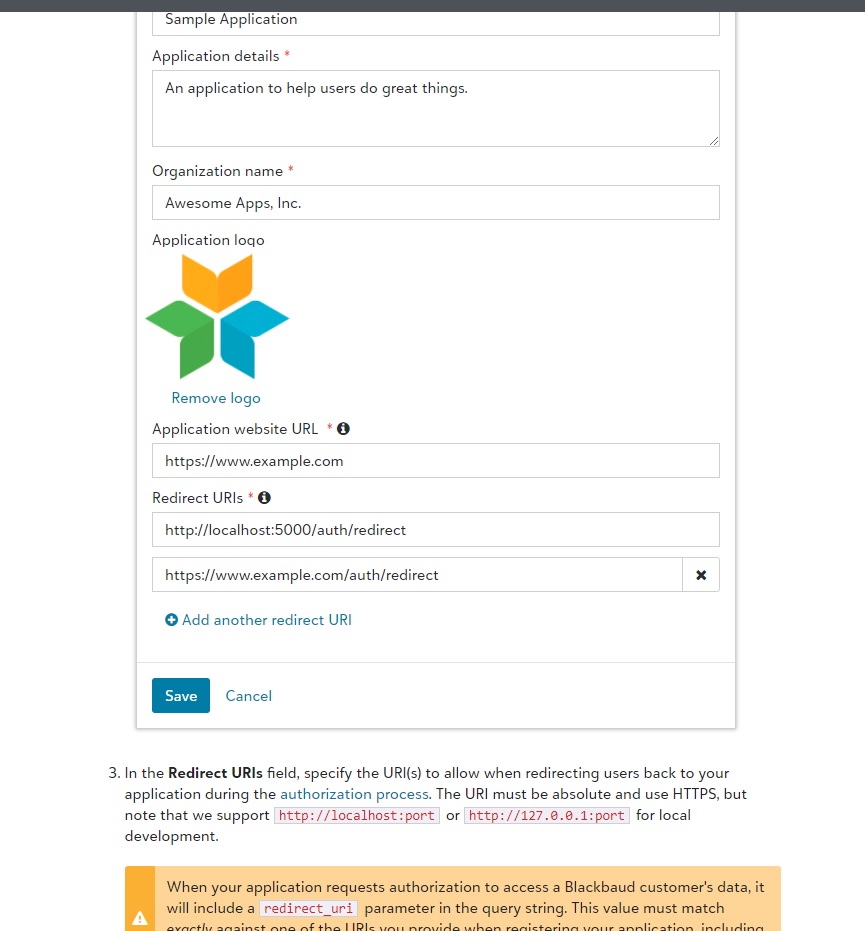 In the attached screenshot from the help document, there is a required field for Redirect URLs. I'm just needing more information on what the customer is to put for this and where to find their API address.