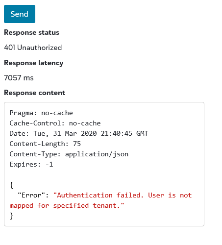 User is not mapped to specified Tenant.