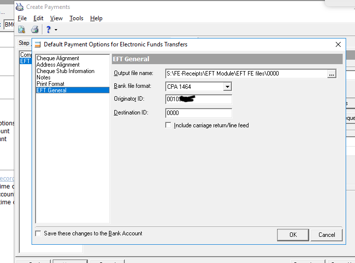 We bank with BMO who confirms they accept CPA 1464 file format. When we produced the EFT file from FE and uploaded to BMO's EFT portal, the file was rejected because as BMO helpdesk states "there is a problem with format. You choose 1464 option, but the file length is 4392 which is invalid. "