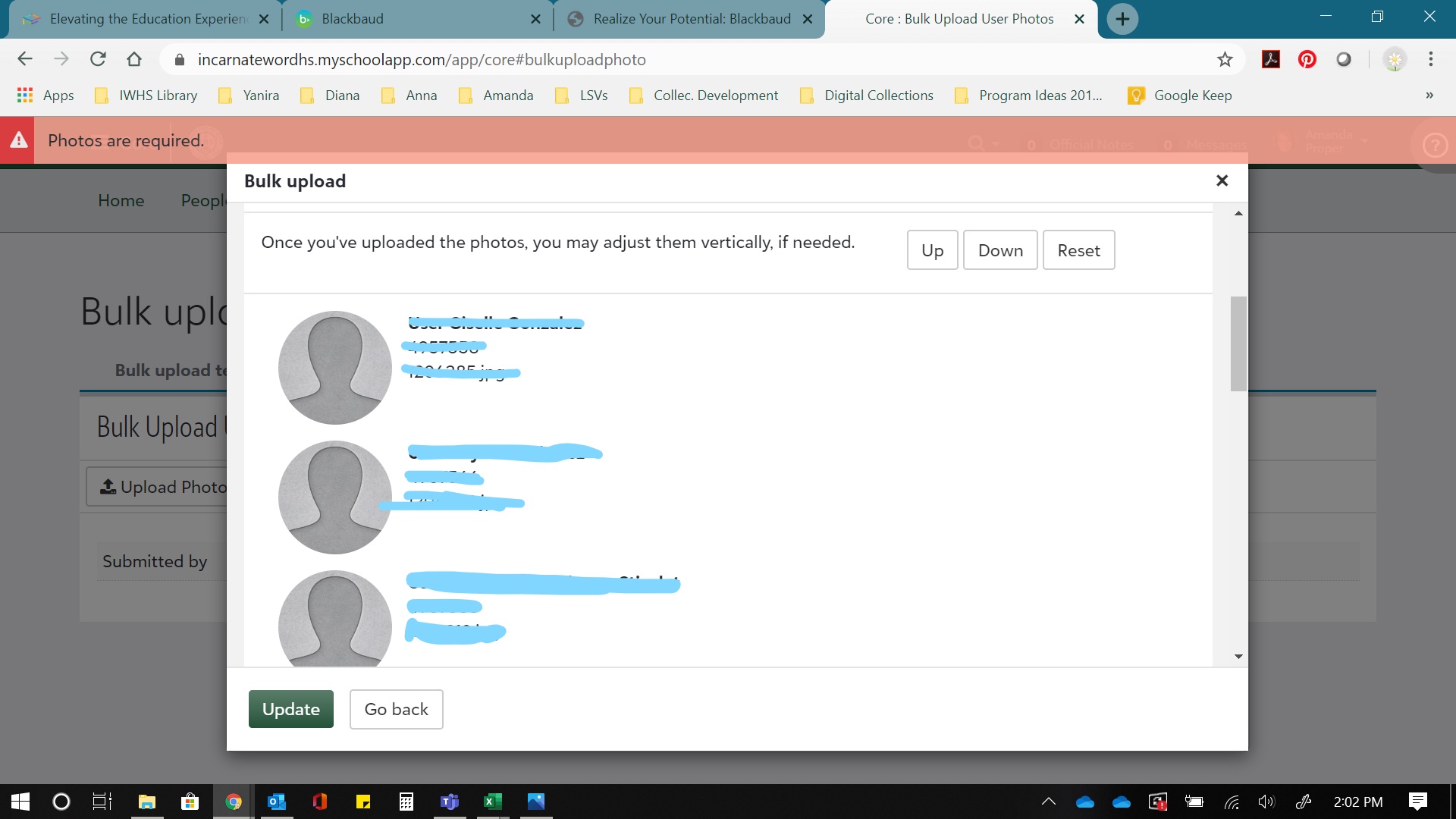 I have been trying for two days to use the Bulk Photo Upload process. I have followed the steps, the .csv file is validated correctly. However, when I go to add the photos they do not load and I get the error bar "Photos are required" see photo. I have tried two different computers and two different browsers and I'm still having the same issue. What am I doing wrong?