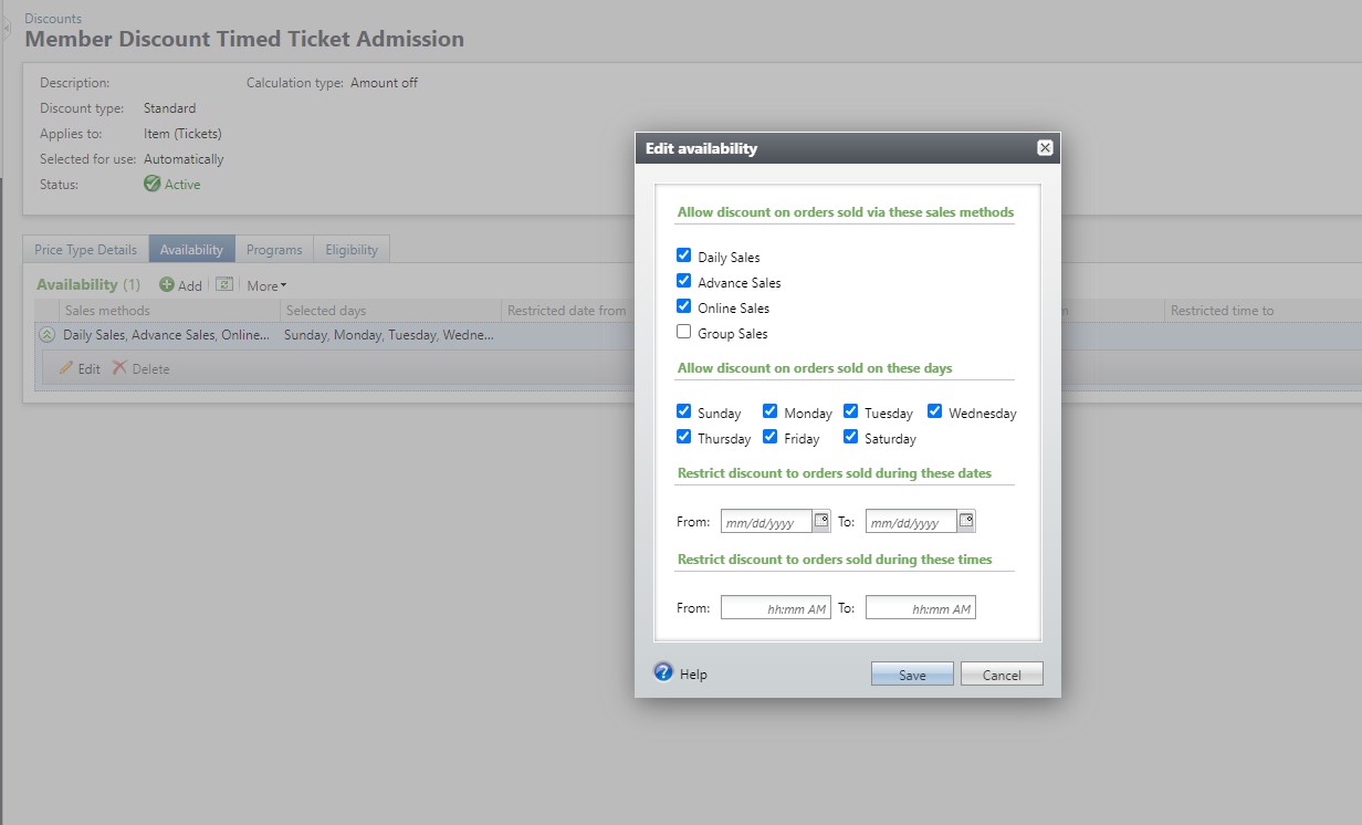 I assume it's a Scheduled Program and not a Special Event set up, right? If it is a Special Event Altru doesn't allow discounts for those online... (pretty annoying).