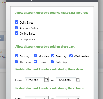Hi Sarah, Yes, it is active and it works with Advance Sales. We have an idea for a workaround - adding in a Black Friday price type for the duration of the sale and then removing it at the end. Or we could just have it be phone orders only? If I have time, I will try Altru chat later... Thanks, Tamara0