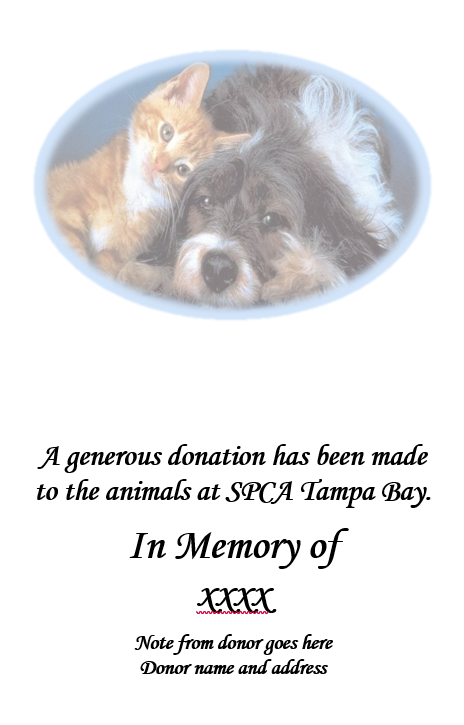 we have a few different variations, but this is our regular tribute notification, we have both e-cards and regular cards depending on what the donor wants sent:
