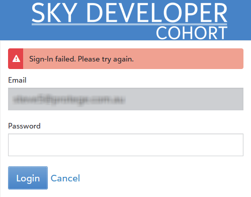 Then I tried using our SKY Developer Cohort account and couldn't sign in (using our standard Blackbaud credentials):