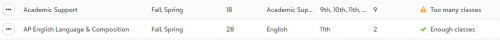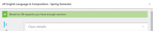 On the Requests and schedules Classes screen, I have Class status of Too Many Classes and Enough Classes - I can still add sections via the Manage classes screen.