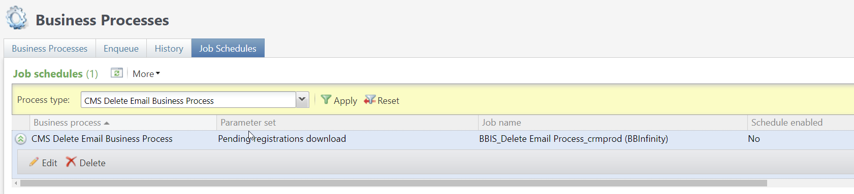 I'm throwing darts so this may not be it either. Check out the code behind this SP: USP_BUSINESSPROCESSJOBSCHEDULE_GETLIST