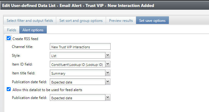 This might help - I did something similar to send an email notification when there's interaction activity on a Board members record. Have you built a user-defined data list? There's a second sub-tab on the "Set save options" tab. You'd want the second option listed - "Allow this datalist to be used for feed alerts". After that's all set, go back to the Custom Email area and this data list can be used to trigger a custom email.