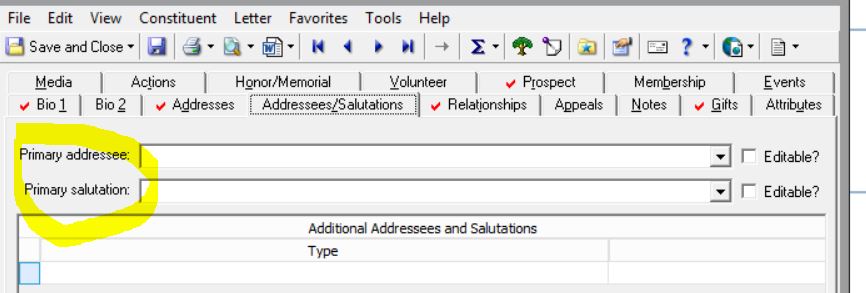 Under Primary name formats, you can view the individual's preferred addressee and salutation to use most of the time.