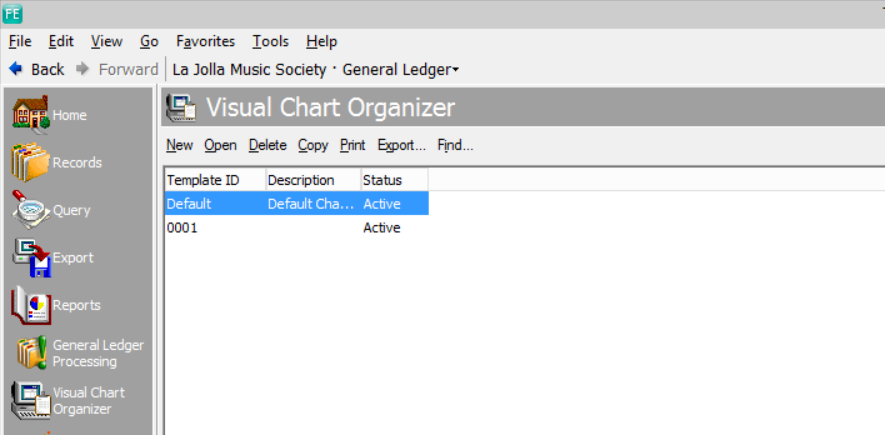 I'm in Database view, i see visual chart organizer on the left. i click there, and this is what i have. where do i go to find the my PL?