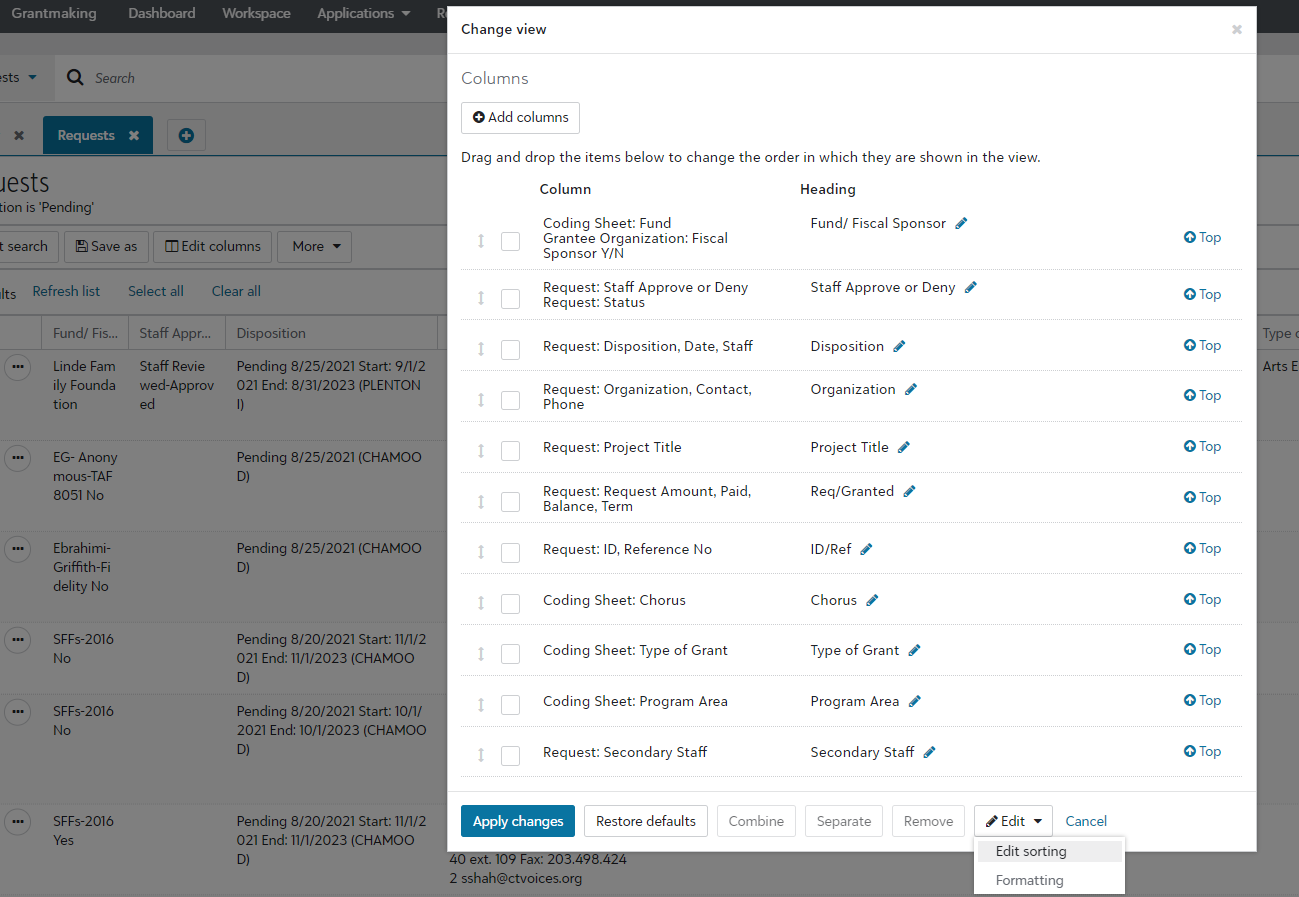 Also, if you EDIT COLUMNS, there is an EDIT SORTING option.